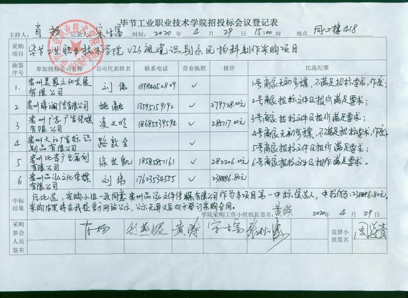 畢節(jié)工業(yè)職業(yè)技術(shù)學(xué)院VIS視覺(jué)識(shí)別系統(tǒng)物料制作采購(gòu)項(xiàng)目第二中標(biāo)候選人順延為第一中標(biāo)候選人的公告