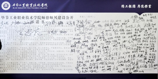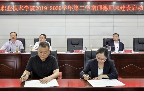 會上,院長與副院長,副院長與分管部門負責人,部門負責人與所屬教職員工層層簽訂師德師風責任書;全院教職員工就師德師風建設作出公開承諾并簽名。