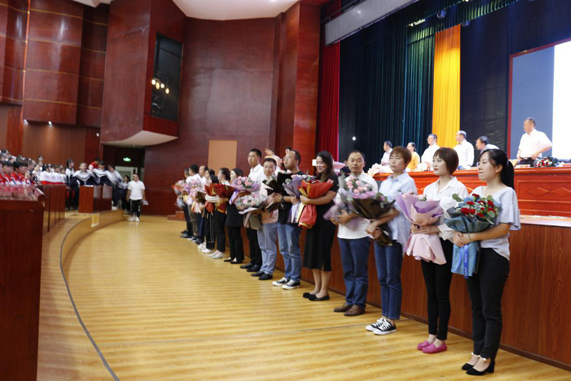 (學(xué)生向?qū)W校領(lǐng)導(dǎo)及畢業(yè)班班主任獻花)