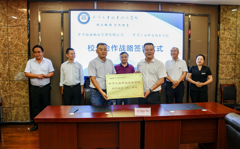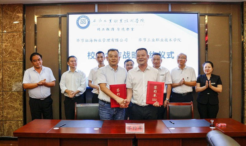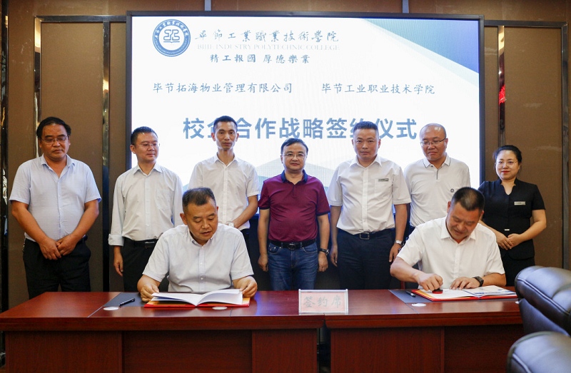 為深入貫徹落實(shí)習(xí)近平總書(shū)記對(duì)技能人才工作重要指示精神,切實(shí)做好新時(shí)代技能人才工作,9月3日,畢節(jié)拓海物業(yè)管理有限公司與畢節(jié)工業(yè)職業(yè)技術(shù)學(xué)院校企合作戰(zhàn)略協(xié)議簽訂儀式在學(xué)院同心樓三樓會(huì)議室舉行。畢節(jié)拓海物業(yè)管理有限公司總經(jīng)理?xiàng)钤聫?qiáng)、常務(wù)副總經(jīng)理邱鋒一行,學(xué)院黨委書(shū)記李涌,黨委副書(shū)記、院長(zhǎng)邱國(guó)援,黨委委員、副院長(zhǎng)吳家文、相關(guān)部門(mén)負(fù)責(zé)人及教師代表出席儀式。簽約儀式由邱國(guó)援主持。