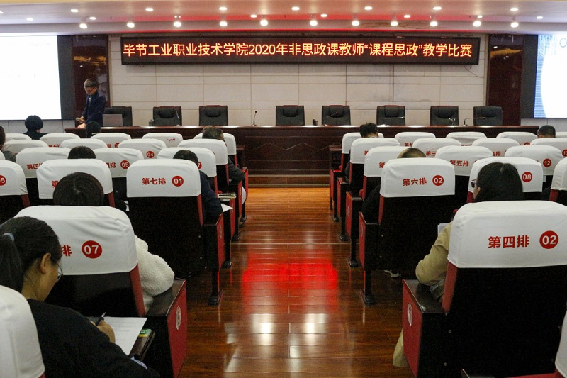 為深入學習貫徹習近平總書記關于教育的重要論述、全國教育大會精神,貫徹落實中共中央辦公廳、國務院辦公廳《關于深化新時代學校思想政治理論課改革創(chuàng)新的若干意見》《高等學校課程思政建設指導綱要》等文件精神,把思想政治教育貫穿人才培養(yǎng)體系,全面推進學院課程思政建設,發(fā)揮好每門課程的育人作用,提高學院人才培養(yǎng)質量,培養(yǎng)擔當民族復興大任的時代新人。2020年10月14日下午,畢節(jié)工業(yè)職業(yè)技術學院在行政樓9樓會議室舉行2020年非思政課教師"課程思政"教學比賽,全院教職工觀摩了比賽。
