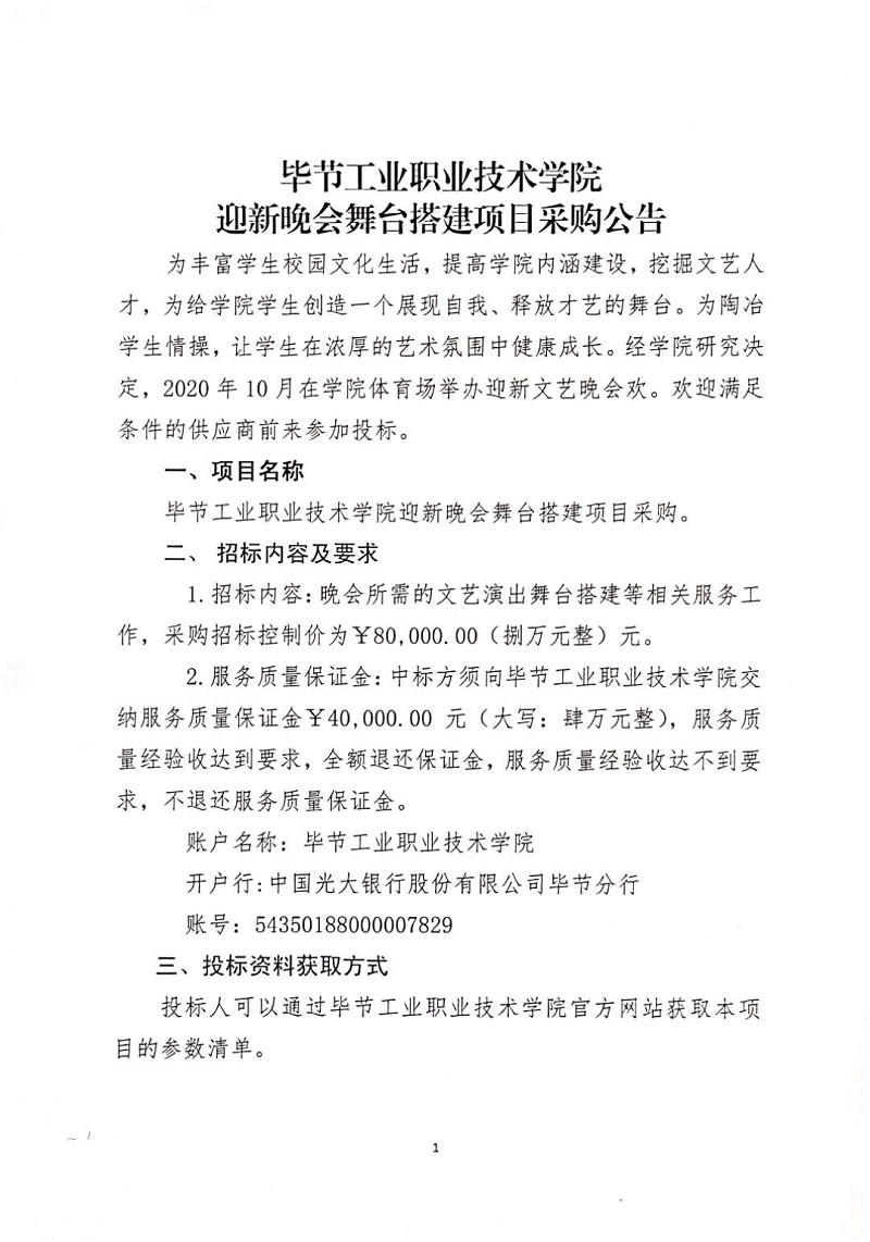 畢節(jié)工業(yè)職業(yè)技術學院 迎新晚會舞臺搭建項目采購公告