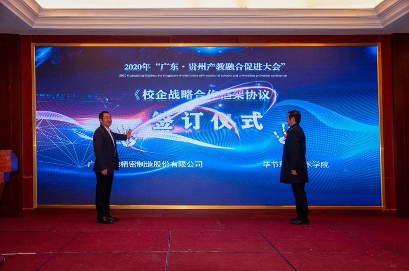 發(fā)揮自身優(yōu)勢,助力合作共贏。畢節(jié)市人民政府副市長胡愛斌在會中坦言,落實東西部扶貧協(xié)作,畢節(jié)要盡其資源,提升兩省兩市的產(chǎn)教契合度,圍繞自身的優(yōu)勢,加強廣東企業(yè)和貴州教育的結(jié)合優(yōu)勢,為畢節(jié)打造更多的“畢工強將”、奮力人才!