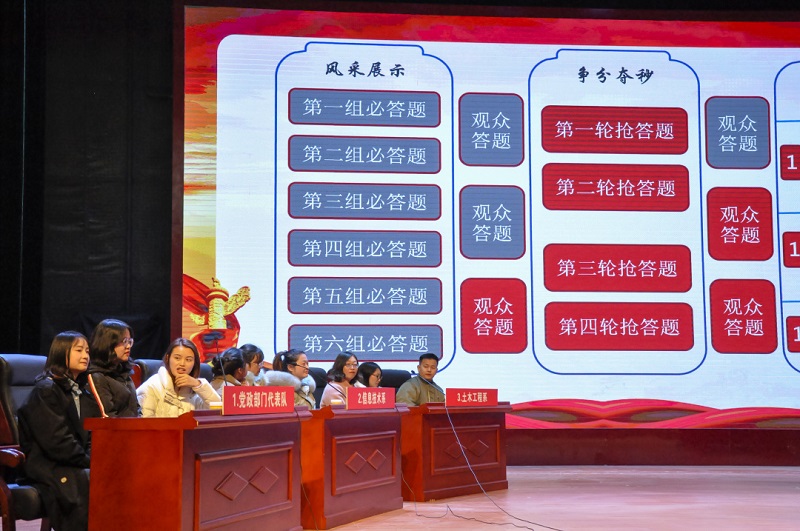 此次活動(dòng)緊緊圍繞“學(xué)黨史、悟思想、辦實(shí)事、開新局”的黨史學(xué)習(xí)教育目標(biāo),以黨史、新中國史、改革開放史、社會(huì)主義發(fā)展史為主要內(nèi)容。活動(dòng)分為風(fēng)采展示(必答題)、爭分奪秒(搶答題)、巔峰對(duì)決(風(fēng)險(xiǎn)題)四個(gè)環(huán)節(jié)(必要時(shí)進(jìn)行加賽),同時(shí),在每一環(huán)節(jié)結(jié)束后設(shè)置了現(xiàn)場觀眾互動(dòng)答題的環(huán)節(jié),增強(qiáng)了大家的互動(dòng)性和積極性。