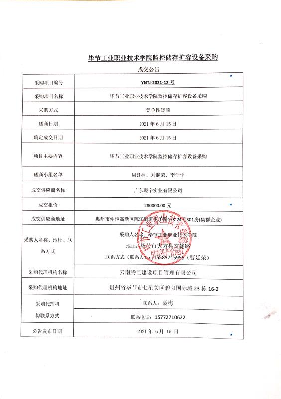 畢節(jié)工業(yè)職業(yè)技術(shù)學(xué)院監(jiān)控儲(chǔ)存擴(kuò)容設(shè)備采購成交公告