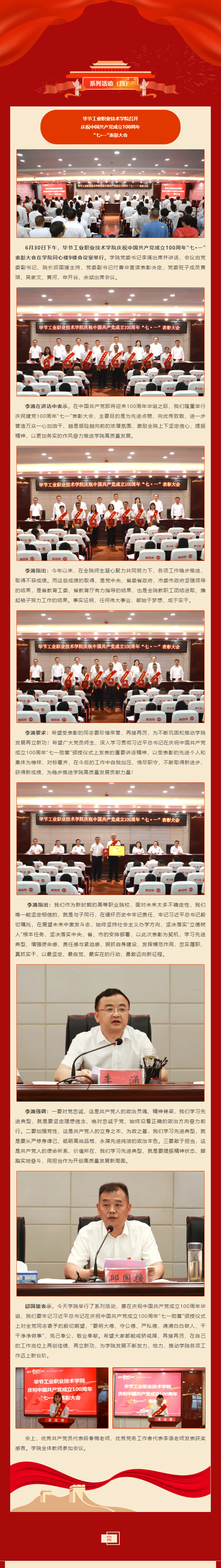 慶祝建黨100周年系列活動(dòng)(四) | 畢節(jié)工業(yè)職業(yè)技術(shù)學(xué)院召開慶祝中國(guó)共產(chǎn)黨成立100周年 “七·一”表彰大會(huì)