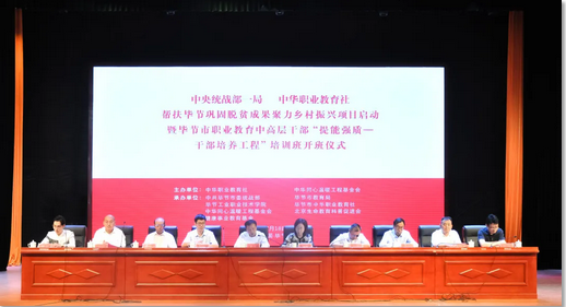 2021年7月18日上午,中央統(tǒng)戰(zhàn)部、中華職業(yè)教育社幫扶畢節(jié)鞏固脫貧成果聚力鄉(xiāng)村振興項目啟動暨畢節(jié)市職業(yè)教育中高層干部“提能強質(zhì)——干部培養(yǎng)工程”培訓班開班儀式在我院會議中心舉行。
