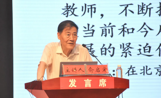 ▲國(guó)家職業(yè)教育研究院教授、北京師范大學(xué)教授俞啟定作“關(guān)于‘雙師型’教師的定位與培養(yǎng)問(wèn)題探討”專題講座