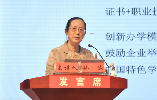 ▲中國(guó)教育科學(xué)研究院職業(yè)教育與繼續(xù)教育研究所所長(zhǎng)孫誠(chéng)作“新時(shí)期職業(yè)教育發(fā)展的時(shí)代背景、內(nèi)涵要義與建設(shè)路徑”專題講座