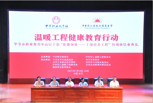 7月20日下午,畢節(jié)市職業(yè)教育中高層干部“提能強(qiáng)質(zhì)——干部培養(yǎng)工程”培訓(xùn)班結(jié)業(yè)典禮在我院會(huì)議中心舉行。中華同心溫暖工程基金會(huì)健康教育事業(yè)教育基金副主任吳昊洋,北京師范大學(xué)教授肖川,首都師范大學(xué)教授田漢族,北京生命教育科普促進(jìn)會(huì)常務(wù)副會(huì)長(zhǎng)兼秘書長(zhǎng)曹專,畢節(jié)市教育局副局長(zhǎng)朱德貴,畢節(jié)工業(yè)職業(yè)技術(shù)學(xué)院繼續(xù)教育部負(fù)責(zé)人閔宇航出席活動(dòng),全體參訓(xùn)學(xué)員300余人參加活動(dòng)。結(jié)業(yè)典禮由畢節(jié)市中華職業(yè)教育社專職副主任夏青主持。