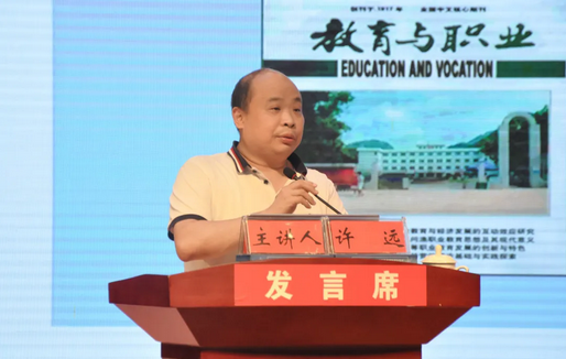 ▲人力資源和社會(huì)保障部職業(yè)技能鑒定中心研究員許遠(yuǎn)作“新時(shí)代職業(yè)教育和技能人才培養(yǎng)熱點(diǎn)問(wèn)題”專題講座