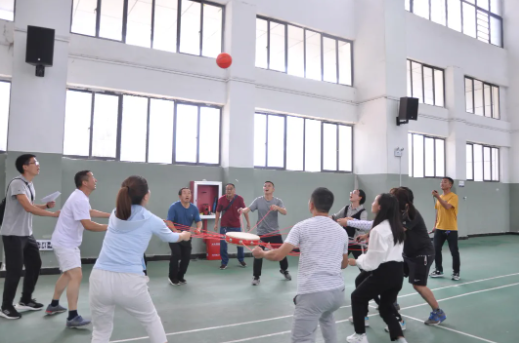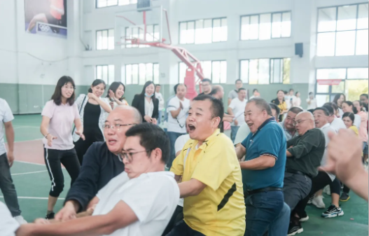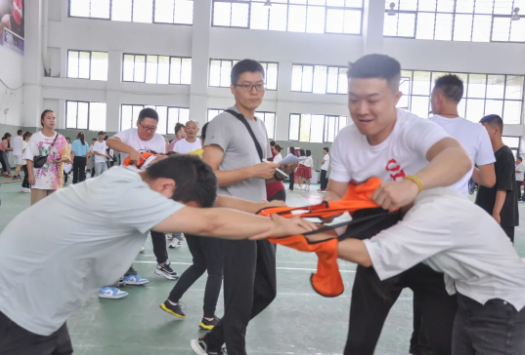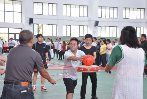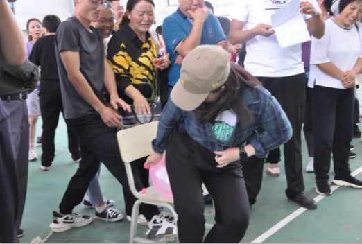 活動共設(shè)置了連環(huán)穿衣、同心鼓、坐爆氣球和拔河四個項(xiàng)目,參與教師分為八個小組進(jìn)行比拼。現(xiàn)場笑聲不斷,充滿了熱鬧的氣氛,歡呼聲、加油聲、吶喊聲此起彼伏。