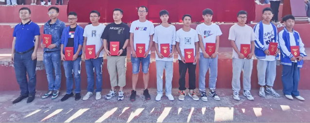 9月30日上午 我院2021級(jí)高職新生軍訓(xùn)匯演 暨表彰大會(huì) 在田徑場(chǎng)隆重舉行 歷經(jīng)兩周的洗禮 軍訓(xùn)生活終于告一段落 新生們從盼望著軍訓(xùn)早點(diǎn)結(jié)束 到與教官告別的依依不舍 關(guān)于軍訓(xùn)的記憶 已經(jīng)化作我們踏入大學(xué)后的 第一份美好回憶 少年英姿颯爽 他們勢(shì)如滾滾洪流、迅若浩浩疾風(fēng) “標(biāo)兵就位” 目光如炬、步履堅(jiān)定 他們訓(xùn)練有素 擺臂、踢腿、 落地 每一步都精確無(wú)誤 行走、前進(jìn),這是勇往的節(jié)奏 拉歌、哨聲,這是熱血進(jìn)行曲 回憶軍訓(xùn),青春的嘴角上揚(yáng) 軍訓(xùn)匯演結(jié)束后,學(xué)院領(lǐng)導(dǎo)為我院在此次軍訓(xùn)中表現(xiàn)突出的個(gè)人和團(tuán)隊(duì),以及參加貴州省第一屆職業(yè)技能大賽畢節(jié)市選拔賽暨畢節(jié)市第一屆職業(yè)技能大賽、2021年全省校園路跑接力賽獲獎(jiǎng)的參賽隊(duì)員進(jìn)行了表彰。 (優(yōu)秀教官表彰合影) (優(yōu)秀軍訓(xùn)班級(jí)表彰合影) (優(yōu)秀軍訓(xùn)生表彰合影) (貴州省第一屆技能大賽畢節(jié)市選拔賽暨畢節(jié)市第一屆職業(yè)技能大賽獲獎(jiǎng)代表表彰合影) (2021年全省校園路跑接力賽表彰合影) 表彰結(jié)束后,邱國(guó)援院長(zhǎng)在發(fā)言中寄語(yǔ)全體新生,作為強(qiáng)國(guó)新一代和中國(guó)特色社會(huì)主義的建設(shè)者和接班人,希望同學(xué)們?cè)诮窈蟮娜兆永飯?jiān)定理想信念,練就過(guò)硬本領(lǐng),投身強(qiáng)國(guó)偉業(yè)、厚植國(guó)家情懷,珍惜韶華、奮發(fā)有為,把拼搏進(jìn)取作為追求卓越的人生信條,爭(zhēng)做時(shí)代奮進(jìn)者、開(kāi)拓者、奉獻(xiàn)者,努力把自己培養(yǎng)成為祖國(guó)建設(shè)的有用之才、棟梁之才,以國(guó)家富強(qiáng)、人民幸福為己任,讓青春年華在為國(guó)家、為人民的奉獻(xiàn)中煥發(fā)出絢麗光彩,在祖國(guó)的萬(wàn)里長(zhǎng)空放飛青春夢(mèng)想,讓中華民族偉大復(fù)興在奮進(jìn)中夢(mèng)想成真。 (邱國(guó)援院長(zhǎng)發(fā)言) 同學(xué)們,大學(xué)生活已經(jīng)開(kāi)啟 希望每一位鏗鏘少年 能帶著軍訓(xùn)時(shí)的毅力與勇氣 在廣大的沃土上 以更高昂的熱情斗志 綻放青春 追逐夢(mèng)想