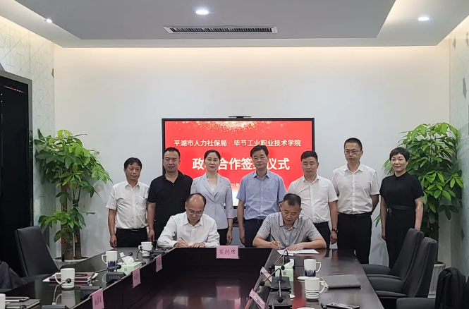 ▲院長邱國援代表學院與平湖市人社局簽訂校政合作協(xié)議