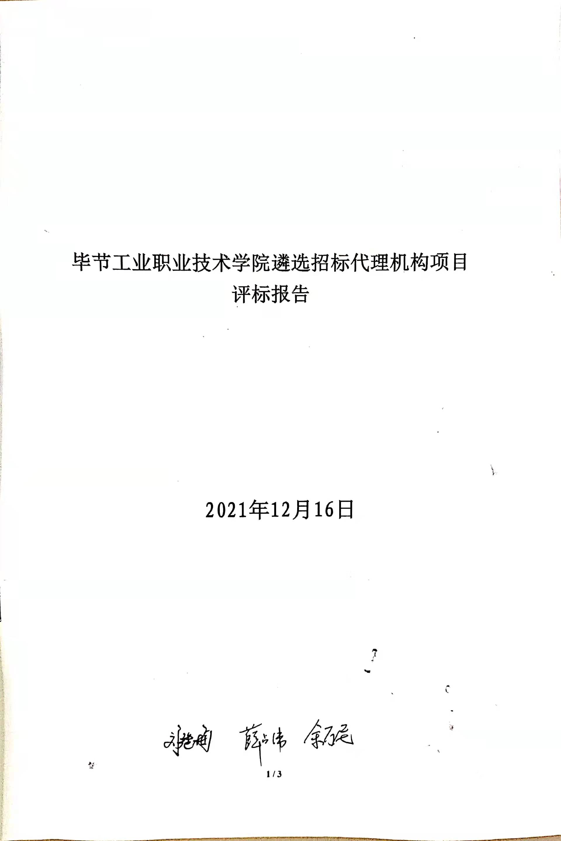 畢節(jié)工業(yè)職業(yè)技術(shù)學院遴選招標代理機構(gòu)項目評標報告