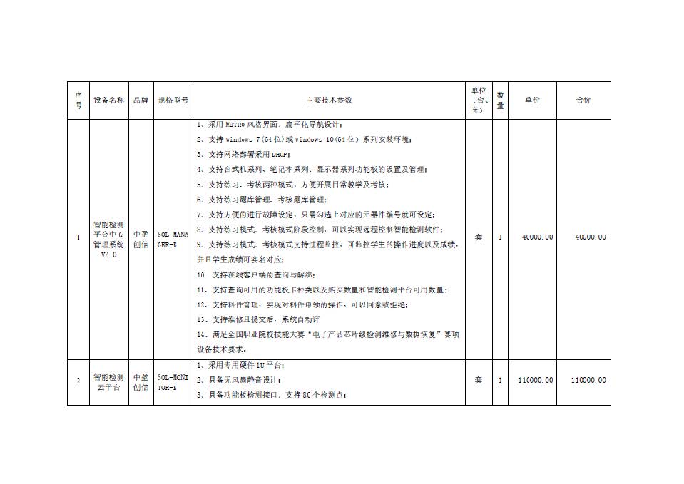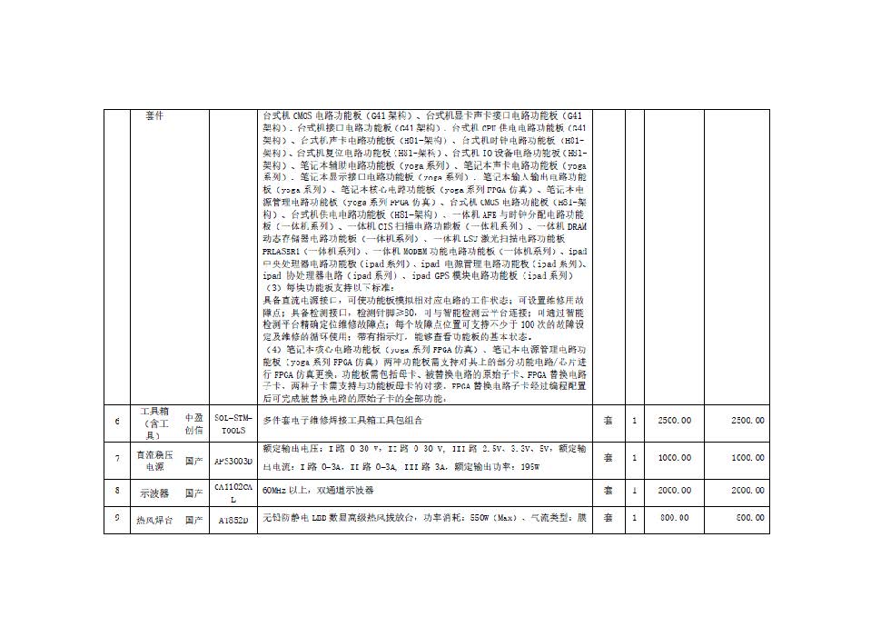 標(biāo)的名稱:計(jì)算機(jī)硬件檢測及數(shù)據(jù)恢復(fù)實(shí)訓(xùn)、技能大賽設(shè)備購置 品牌:詳見附件。 規(guī)格型號(hào):詳見附件。 數(shù)量:詳見附件 單價(jià):詳見附件(此單價(jià)為中標(biāo)供應(yīng)商的基礎(chǔ)報(bào)價(jià)) 服務(wù)要求:按國家現(xiàn)行的相關(guān)規(guī)范、標(biāo)準(zhǔn)以及采購項(xiàng)目的實(shí)際需求20日歷天完成本項(xiàng)目的供貨及安裝等要求,符合采購人使用要求。 |