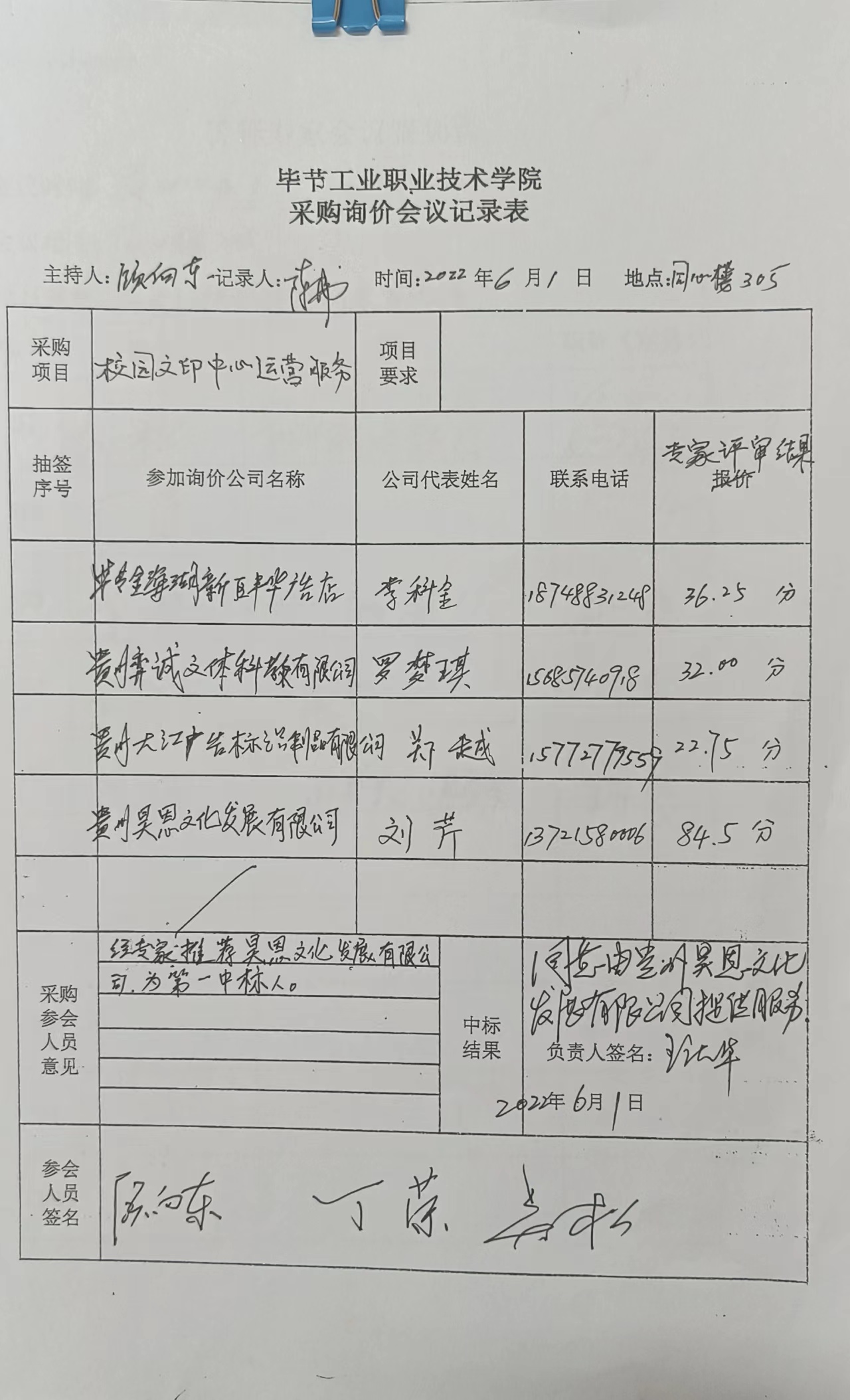 畢節(jié)工業(yè)職業(yè)技術(shù)學(xué)院采購詢價(jià)會議記錄表公示