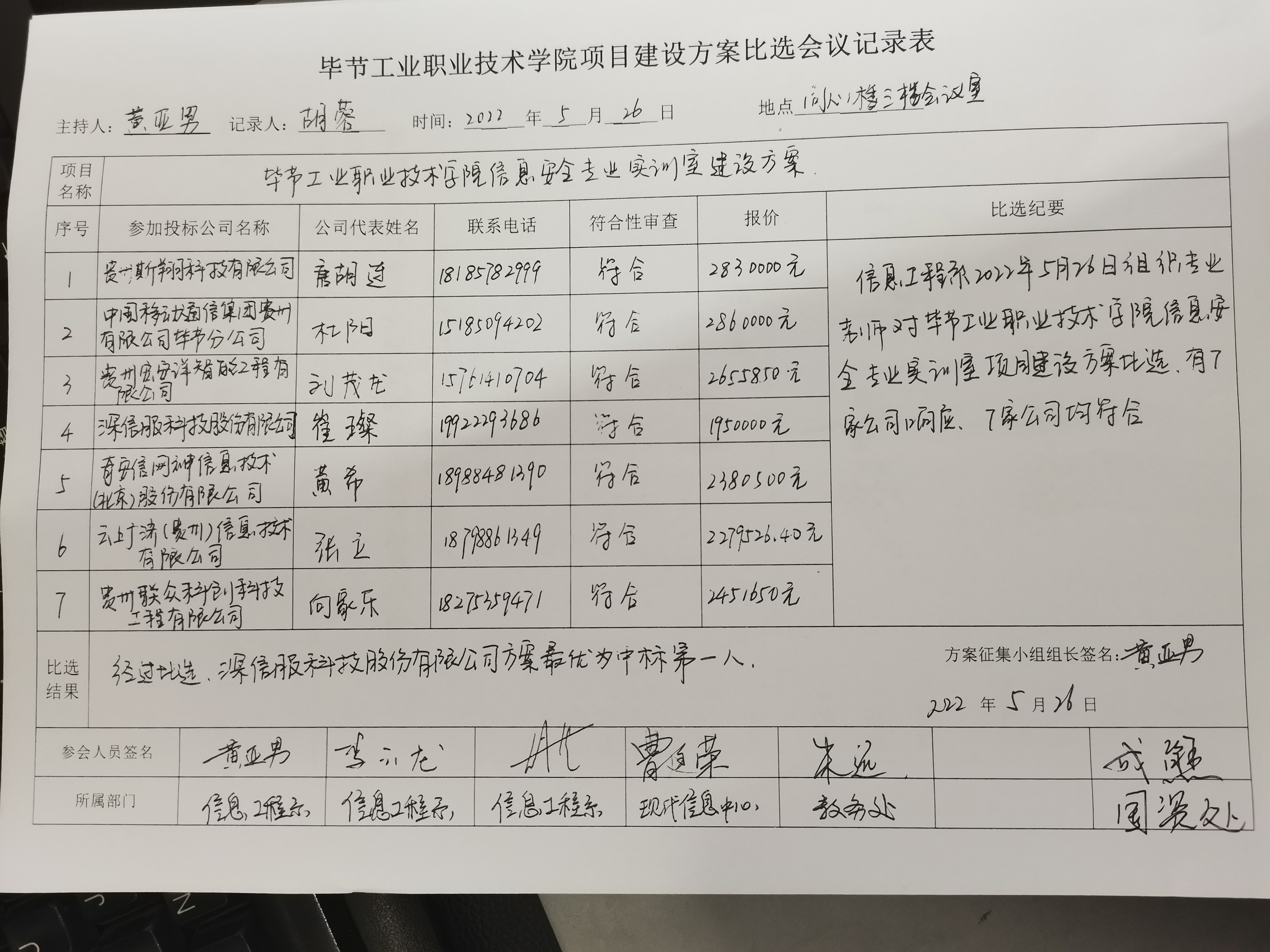 畢節(jié)工業(yè)職業(yè)技術(shù)學(xué)院信息安全專業(yè)實訓(xùn)室建設(shè)項目征集方案比選結(jié)果公示