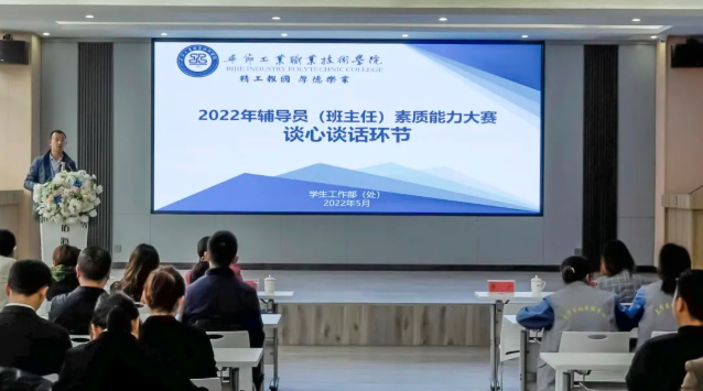 本屆輔導(dǎo)員(班主任)素質(zhì)能力大賽對標(biāo)國賽新賽制,分為基礎(chǔ)知識測試、案例研討、談心談話三個項目,基礎(chǔ)知識測試重點考察輔導(dǎo)員(班主任)的理論素養(yǎng)和業(yè)務(wù)知識;案例研討主要考察輔導(dǎo)員(班主任)綜合運用理論分析問題、研判問題、解決問題的能力;談心談話主要考察輔導(dǎo)員(班主任)對學(xué)生特征、學(xué)生成長成才規(guī)律的了解把握程度,對學(xué)生的教育引導(dǎo)能力、解決理論困惑和實際問題的能力。