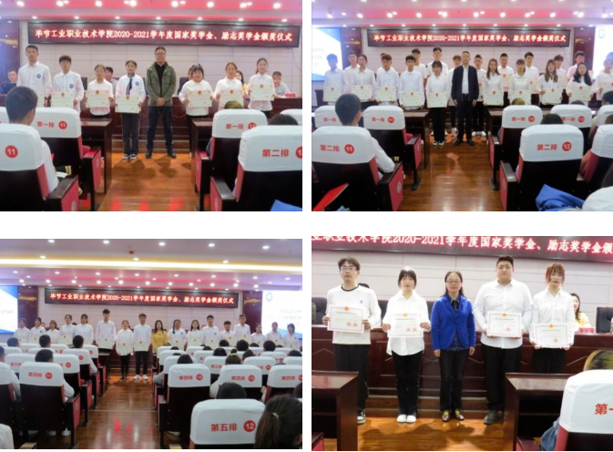 儀式上,學(xué)生資助管理中心負責(zé)人李連成介紹了國家獎學(xué)金、勵志獎學(xué)金的申請流程及評選標準;學(xué)生工作處負責(zé)人胡永祚宣讀了《畢節(jié)工業(yè)職業(yè)技術(shù)學(xué)院關(guān)于表彰2020——2021學(xué)年國家獎學(xué)金、勵志獎學(xué)金獲得者的決定》。本學(xué)年我院共有7名學(xué)生榮獲國家獎學(xué)金,72名學(xué)生榮獲國家勵志獎學(xué)金。
