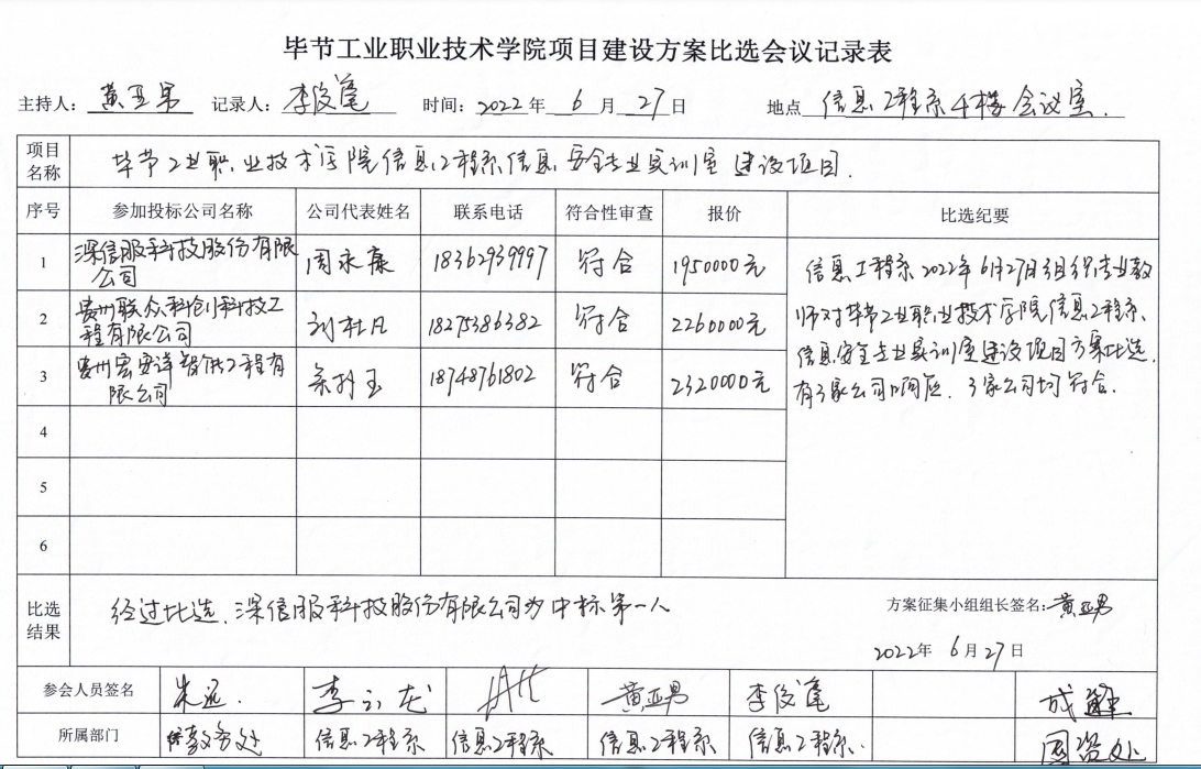 畢節(jié)工業(yè)職業(yè)技術(shù)學(xué)院信息工程系信息安全專業(yè)實訓(xùn)室建設(shè)項目比選結(jié)果公示