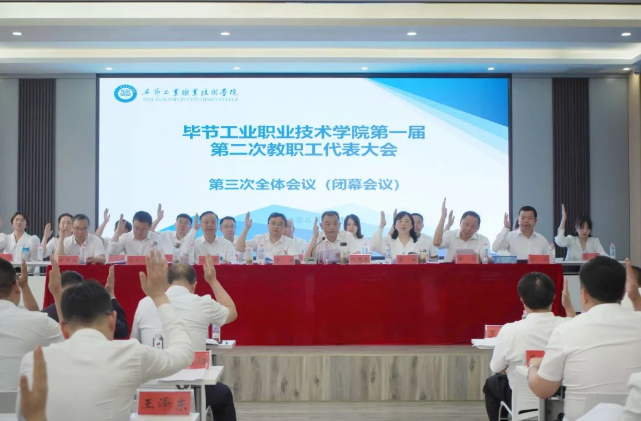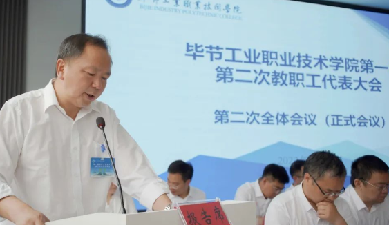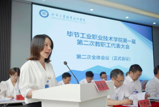 大會(huì)還聽(tīng)取了《畢節(jié)工業(yè)職業(yè)技術(shù)學(xué)院 2021年財(cái)務(wù)預(yù)算執(zhí)行情況和2022年財(cái)務(wù)預(yù)算報(bào)告》《畢節(jié)工業(yè)職業(yè)技術(shù)學(xué)院工會(huì)工作報(bào)告》。書(shū)面審議了《畢節(jié)工業(yè)職業(yè)技術(shù)學(xué)院第一屆第一次教職工代表大會(huì)提案工作落實(shí)情況和第一屆第二次教職工代表大會(huì)提案征集審查情況報(bào)告(草案)》《畢節(jié)工業(yè)職業(yè)技術(shù)學(xué)院專(zhuān)業(yè)技術(shù)職務(wù)評(píng)聘管理暫行辦法(試行)》《畢節(jié)工業(yè)職業(yè)技術(shù)學(xué)院章程(修訂稿)》《畢節(jié)工業(yè)職業(yè)技術(shù)學(xué)院績(jī)效考核方案(修訂稿)》《畢節(jié)工業(yè)職業(yè)技術(shù)學(xué)院教師教學(xué)超課時(shí)補(bǔ)貼計(jì)算辦法(修訂稿)》。會(huì)議一致認(rèn)為,學(xué)院工作報(bào)告回顧簡(jiǎn)明扼要,總結(jié)成績(jī)客觀全面、實(shí)事求是,描繪藍(lán)圖催人奮進(jìn),部署工作扎實(shí)有力,符合中央、省委、市委精神和要求,是一個(gè)實(shí)事求是、措施得力、振奮人心的報(bào)告;會(huì)議一致認(rèn)為,2021年財(cái)務(wù)預(yù)算執(zhí)行情況和2022年財(cái)務(wù)預(yù)算報(bào)告客觀真實(shí),全面反映了學(xué)院經(jīng)費(fèi)管理使用情況,學(xué)院基本建設(shè)工作、資產(chǎn)購(gòu)置、學(xué)科建設(shè)、教學(xué)科研經(jīng)費(fèi)、后勤保障的投入和資金管理使用規(guī)范合理,充分保障了學(xué)院的建設(shè)與發(fā)展;會(huì)議一致認(rèn)為,學(xué)院工會(huì)工作報(bào)告實(shí)事求是,客觀務(wù)實(shí),全面總結(jié)了工會(huì)2021年的工作,思路清晰地謀劃了2022年主要工作;會(huì)議一致認(rèn)為,第一屆第一次教職工代表大會(huì)提案落實(shí)情況及第一屆第二次教職工代表大會(huì)提案案征情況報(bào)告觀真實(shí)地反映了一屆一次教代會(huì)代表提案和提案辦理情況,體現(xiàn)了學(xué)院決策的科學(xué)化、民主化和規(guī)范化,保障教職工民主管理和監(jiān)督的權(quán)利,切實(shí)推動(dòng)了學(xué)院各項(xiàng)事業(yè)高質(zhì)量發(fā)展;會(huì)議一致認(rèn)為,畢節(jié)工業(yè)職業(yè)技術(shù)學(xué)院專(zhuān)業(yè)技術(shù)職務(wù)評(píng)聘管理暫行辦法(試行)、畢節(jié)工業(yè)職業(yè)技術(shù)學(xué)院章程(修訂稿)、畢節(jié)工業(yè)職業(yè)技術(shù)學(xué)院教師教學(xué)超課時(shí)補(bǔ)貼計(jì)算辦法(修訂稿)指導(dǎo)思想明確,修訂依據(jù)充分,是科學(xué)民主決策的過(guò)程,對(duì)于促進(jìn)學(xué)院完善內(nèi)部治理結(jié)構(gòu)、建設(shè)現(xiàn)代大學(xué)制度體系具有重大現(xiàn)實(shí)意義。