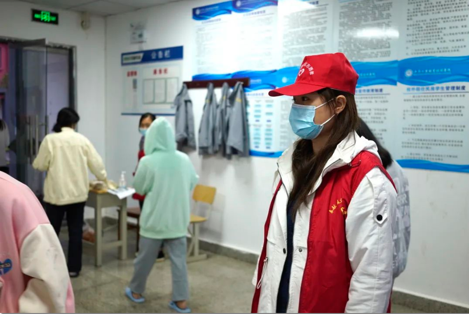 “疫”路奔跑的精靈 廖慧同學(xué)系畢節(jié)工業(yè)職業(yè)技術(shù)學(xué)院信息工程系大數(shù)據(jù)技術(shù)與應(yīng)用專業(yè)學(xué)生,共青團(tuán)員,志愿者。自實(shí)行靜默管理以來,廖慧主動(dòng)申請加入了學(xué)院靜默管理志愿者服務(wù)隊(duì),擔(dān)任宿舍生活區(qū)二期四號樓的志愿者小組長。 九月的畢節(jié),秋風(fēng)微涼。廖慧不怕冷,不怕黑,似乎比平時(shí)堅(jiān)強(qiáng)勇敢了許多,每天早晨,天還未亮,她就第一個(gè)起床,穿上志愿者服裝,開始準(zhǔn)備工作。 “在這場沒有硝煙的戰(zhàn)爭中,我和老師們一起沖鋒陷陣,測量體溫、統(tǒng)計(jì)信息、匯總數(shù)據(jù)、維持秩序、通知同學(xué)。凌晨兩點(diǎn),學(xué)校臨時(shí)通知全員核酸檢測,作為志愿者,凌晨一點(diǎn)就得起床做準(zhǔn)備,到各個(gè)寢室敲門提醒同學(xué),在奔跑途中,鞋子都來不及穿好,又一間一間寢室的統(tǒng)計(jì)學(xué)生在寢人數(shù),為同學(xué)們發(fā)放口罩,提醒她們多穿衣服注意保暖……”“這次參加志愿者服務(wù),讓我收獲了很多感動(dòng),感恩老師們精心的呵護(hù);感恩不遠(yuǎn)千里前來支援的醫(yī)護(hù)人員;感恩每一個(gè)在冷雨中穿行的身影;感恩一日三餐為我們幫前幫后的食堂工作人員……”,廖慧同學(xué)激動(dòng)地說。 “同學(xué),注意間隔距離2米?!薄巴瑢W(xué),請打開貴州健康碼掃描二維碼。”“同學(xué),請有序排隊(duì)”“同學(xué),請戴好口罩,間隔2米”。從宿舍樓到醫(yī)務(wù)室來回的奔跑,完成核酸工作已是凌晨三點(diǎn)多,天很冷,身體也略顯疲憊,可是廖慧同學(xué)并沒有停下,馬上又投入到核酸采樣的數(shù)據(jù)核實(shí)之中…… 廖慧同學(xué)的身后,核酸采樣工作還在繼續(xù),同學(xué)們整齊有序地矗立雨中等待,宛如一棵棵接受秋雨洗禮的青松,以昂揚(yáng)的姿態(tài),迎接清晨的曙光。