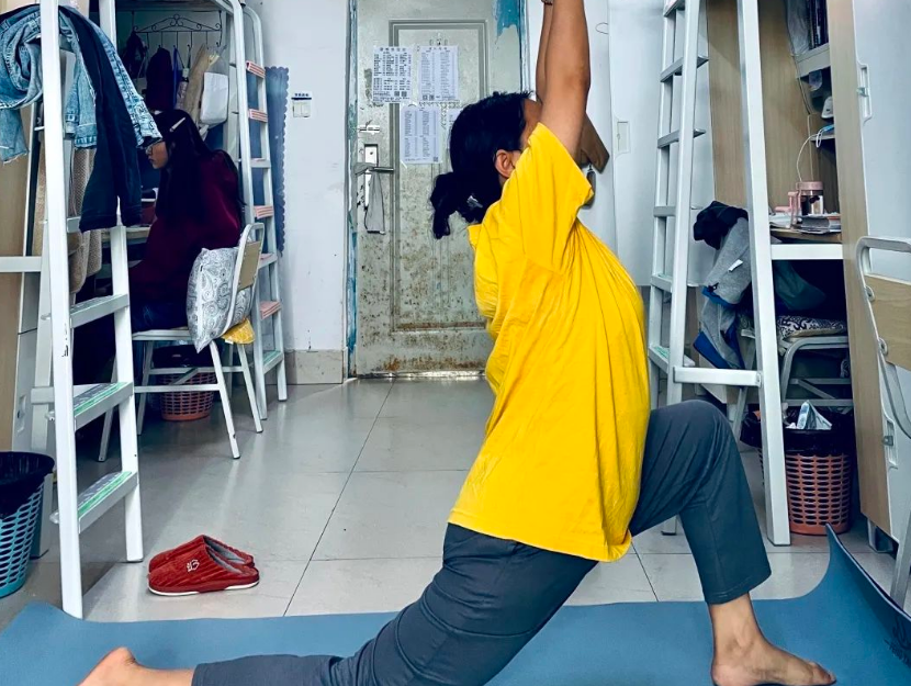 面對當(dāng)前嚴(yán)峻形勢,學(xué)院發(fā)出“停課不停學(xué)”的工作號令,全面啟動網(wǎng)絡(luò)線上教學(xué)。老師們走下三尺講臺,利用線上課堂等方式,不斷創(chuàng)新教學(xué)手段,開啟“云”上教學(xué)模式。疫情改變了學(xué)習(xí)方式,但未改變學(xué)習(xí)的溫度,合理而又自律的居寢學(xué)習(xí)計劃,讓學(xué)生在這段“特殊的假期”過得充實而有意義。 抗疫“宅寢”很無奈,多彩活動掃陰霾 學(xué)院還教育和引導(dǎo)廣大青年學(xué)生加強體育鍛煉,增強身體素質(zhì),確保身心健康。課余飯后,在“合理流動、不聚集”的要求下,宿舍成了同學(xué)們學(xué)習(xí)生活的主要場所,但寢室的生活同樣也豐富多彩,洋溢著無限的活力與歡樂。同學(xué)們用自己別樣的方式讓自己的健康“動起來”,有的宿舍坐著一起聊聊天,講訴自己經(jīng)歷的趣事,有的宿舍練起了瑜伽舒展身心,有的玩起了樂器,有的練起了書法,有的創(chuàng)作起了美術(shù)作品,紛紛為自己的靜默生活增添了一份活力,一掃疫情帶來的陰霾。
