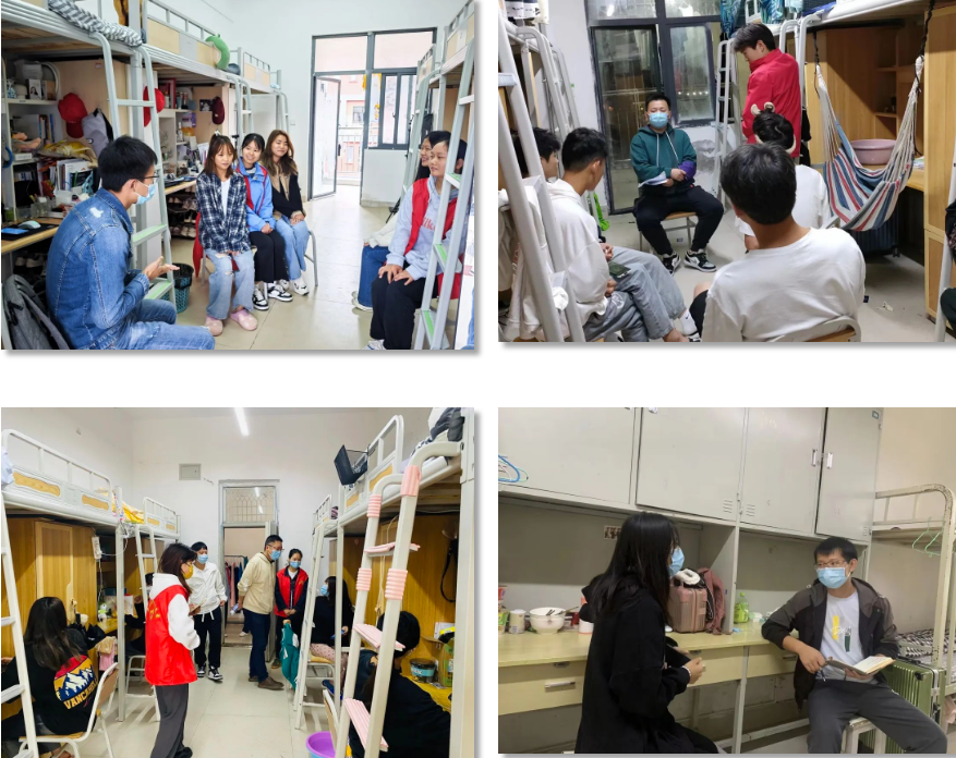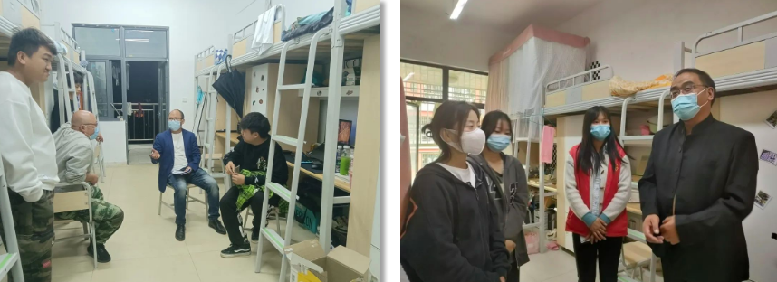 在靜默管理期間,學(xué)院領(lǐng)導(dǎo)、教師深入學(xué)生宿舍了解靜默管理期間學(xué)生思想動態(tài)及學(xué)習(xí)生活情況。囑咐同學(xué)們嚴(yán)格遵守靜默管理期間各項防控措施,做好個人防護(hù)。 停課不停教,停課不停學(xué)