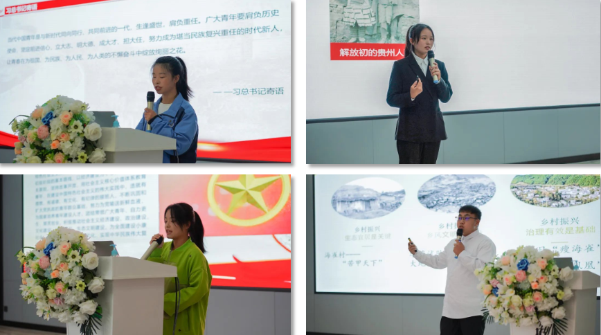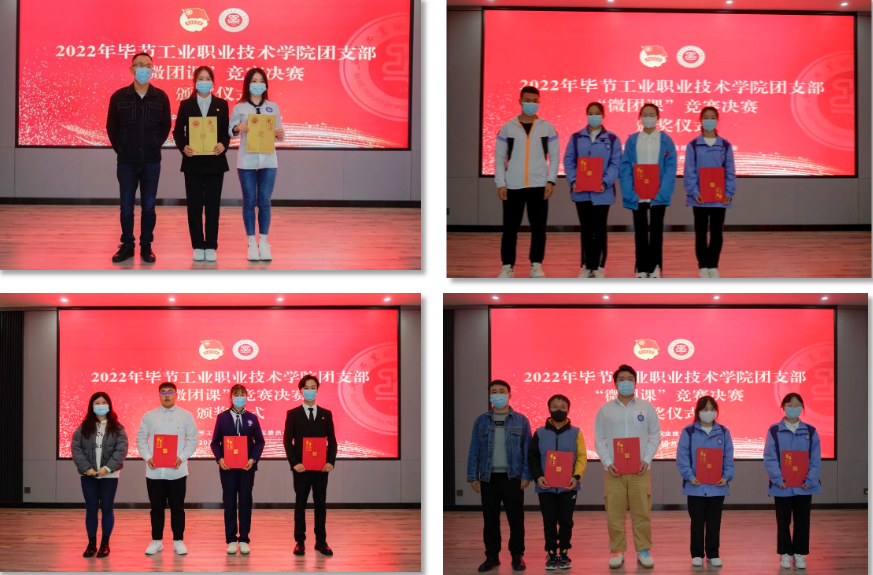 黨委委員、副院長黃文碧出席“微團(tuán)課”競賽現(xiàn)場并致辭,對參賽選手和線上觀看比賽的團(tuán)干、青年團(tuán)員提出了三點希望。一是希望廣大青年團(tuán)員高舉理想信念的旗幟,把握廣大青年的脈搏,堅定理想信念,在實現(xiàn)中國夢的生動實踐中放飛青春夢想,在為實現(xiàn)中國夢的不懈努力中書寫人生華章。二是希望廣大青年團(tuán)員積極投身學(xué)院安全穩(wěn)定發(fā)展,充分發(fā)揮好黨的助手和后備軍的作用。在抗擊疫情過程中,廣大青年團(tuán)員發(fā)揮政治性、先進(jìn)性和群眾性,以高度的社會責(zé)任感做好疫情防控工作。三是希望廣大青年團(tuán)員明白學(xué)院開展“微團(tuán)課”競賽,就是為了給大家提供展示自我、充實理論的舞臺,是加強(qiáng)學(xué)生素質(zhì)培養(yǎng)的有效路徑,是構(gòu)建“三全”育人的具體舉措,也是加強(qiáng)德育工作有關(guān)要求的具體實踐,更是彰顯我院辦學(xué)特色的良好平臺。 (黨委委員、副院長黃文碧致辭) 參賽選手們緊扣習(xí)近平總書記關(guān)于青年和共青團(tuán)工作的重要論述、中國特色社會主義制度、黨史學(xué)習(xí)教育、愛國主義教育、貴州鄉(xiāng)村振興、青年榜樣故事等主題,精心設(shè)計課程亮點,或理論剖析,或情景演繹,以青年的語言用心用情講好黨的故事、貴州故事,弘揚(yáng)主旋律、傳播正能量,充分展示出團(tuán)員干部蓬勃向上的朝氣。 (比賽現(xiàn)場) 經(jīng)過激烈的角逐,“微團(tuán)課”最終結(jié)果出爐。社會服務(wù)系余義勤《貴州脫貧攻堅取得歷史性成就》、信息工程系吳珠玲《紅色記憶之旅 行走多彩貴州》獲得一等獎。信息工程系趙溧陽《鄉(xiāng)村振興給家鄉(xiāng)帶來的巨大變化》、社會服務(wù)系姜東京《優(yōu)秀人物事跡》、土木工程系宋俊成《新時代青年學(xué)生應(yīng)該堅持的成長成才觀》獲二等獎。機(jī)電汽車工程系曾忠濤《阿壩州脫貧攻堅》、社會服務(wù)系鄺嘉明《新時代大學(xué)生責(zé)任擔(dān)當(dāng)》、社會服務(wù)系王秋菊《鄉(xiāng)村振興讓家鄉(xiāng)發(fā)生巨變》、土木工程系張瑩《“曙光”黎平》獲三等獎。社會服務(wù)系團(tuán)總支獲優(yōu)秀組織獎。 (頒獎儀式) (合影留念)