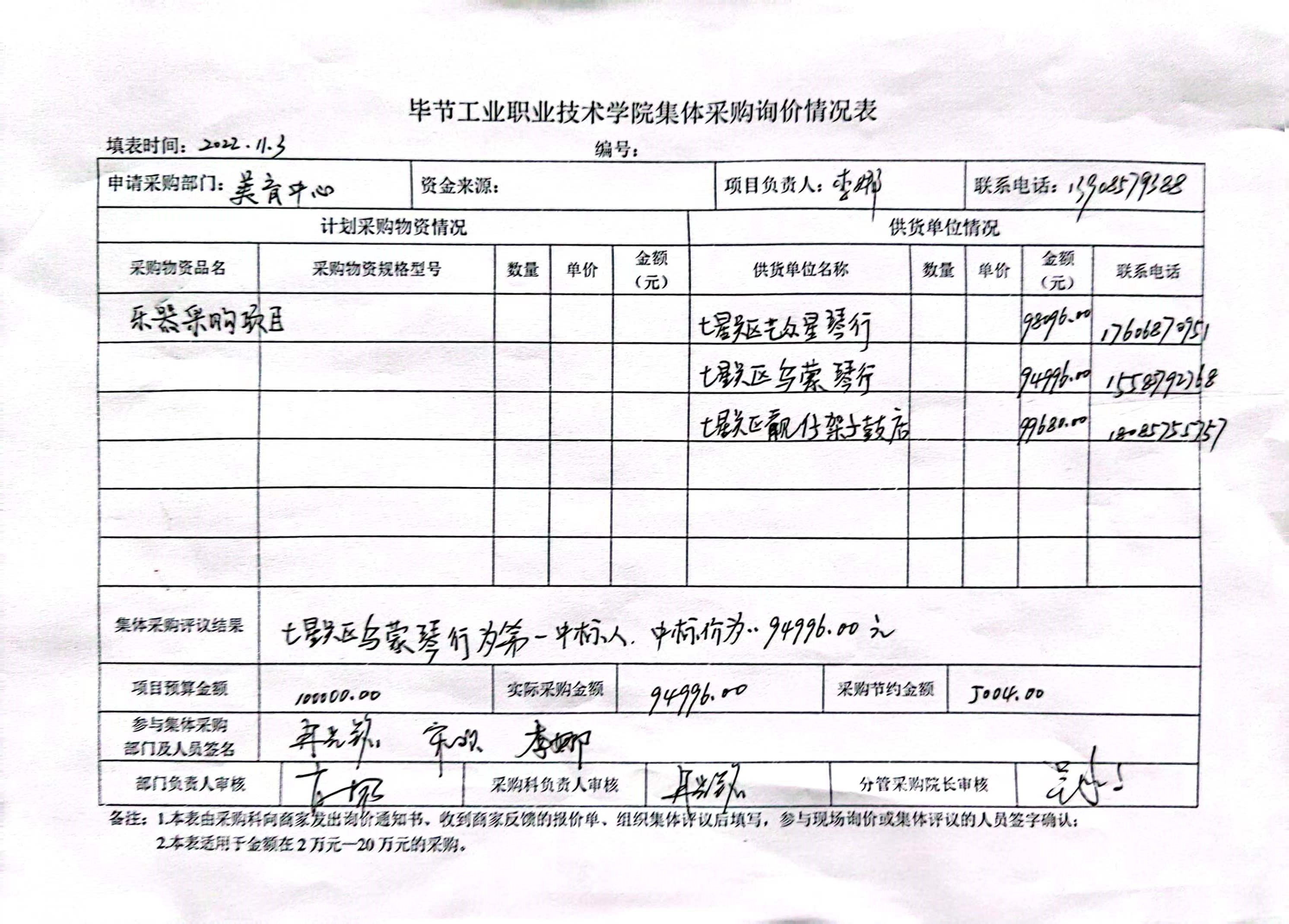 美育中心樂器采購項目詢價結果公示