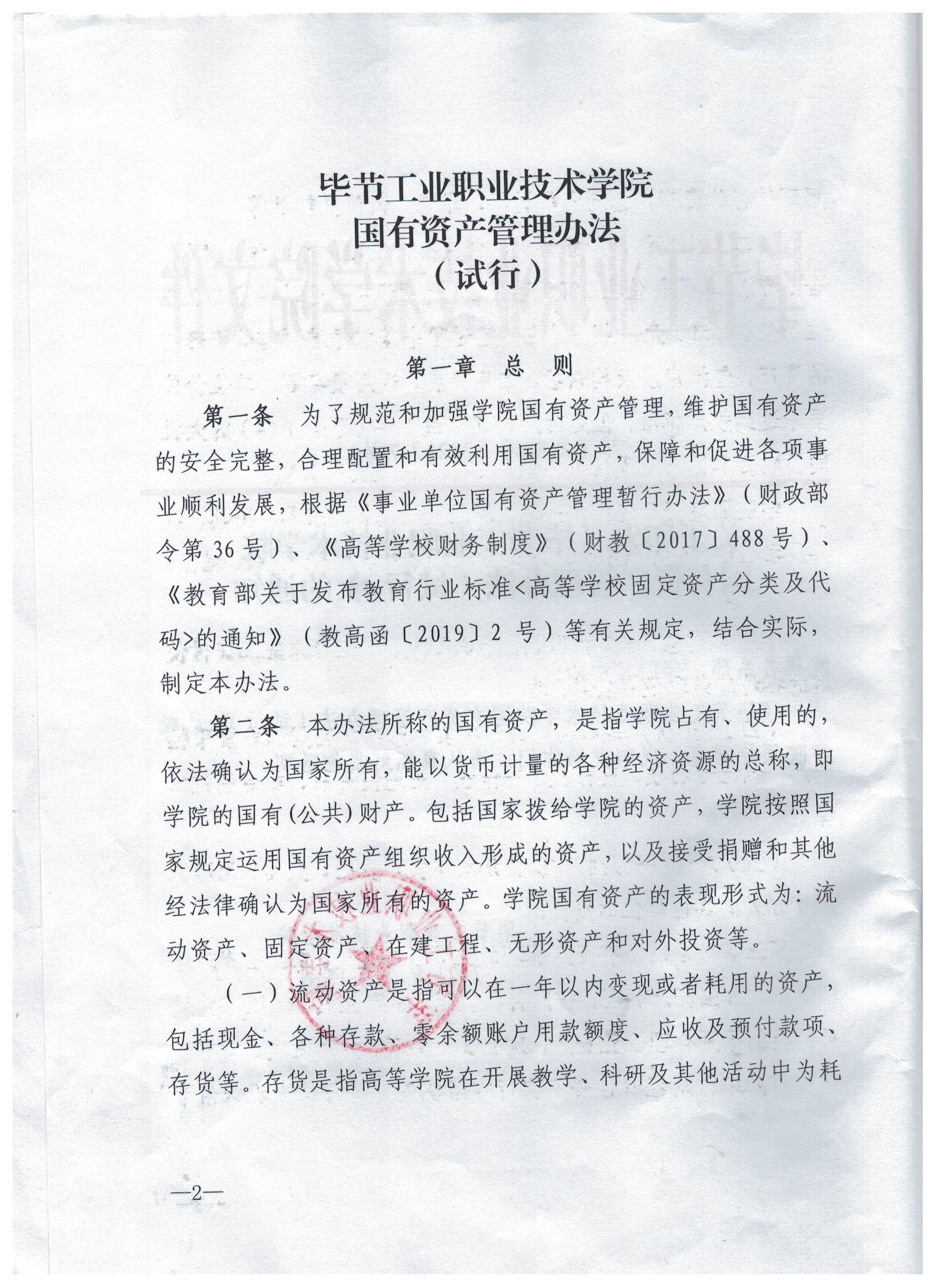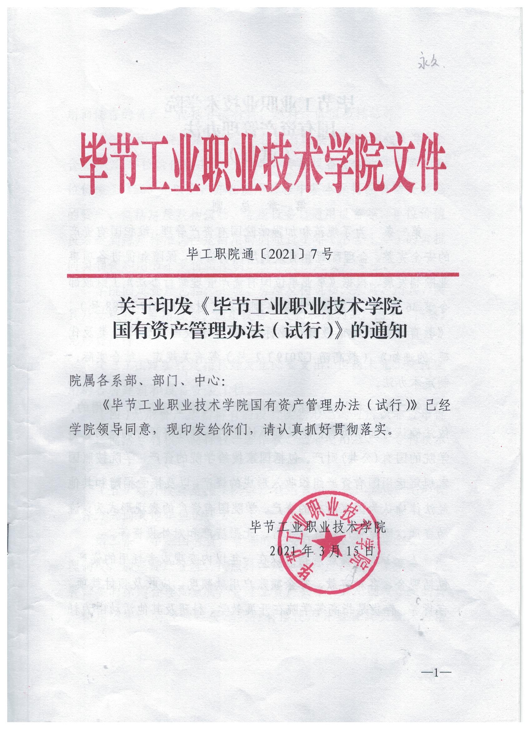 關(guān)于印發(fā)《畢節(jié)工業(yè)職業(yè)技術(shù)學(xué)院國有資產(chǎn)管理辦法(試行)》的通知