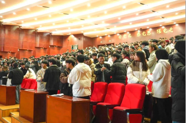 2月15日,學(xué)院黨委委員、副院長黃文碧在會議中心為各班級心理委員、寢室心理聯(lián)絡(luò)員共589人開展業(yè)務(wù)知識培訓(xùn)。 (別開生面的破冰游戲“擊掌”活躍了現(xiàn)場氣氛,拉開了培訓(xùn)的序幕)