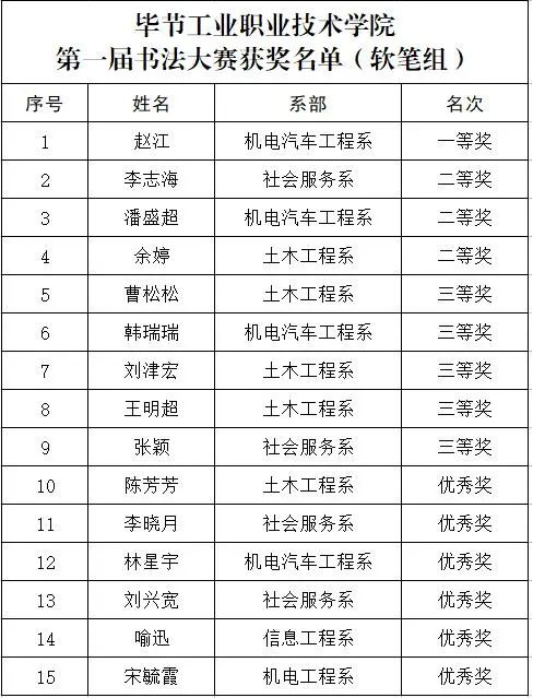學院第一屆書法大賽圓滿落幕