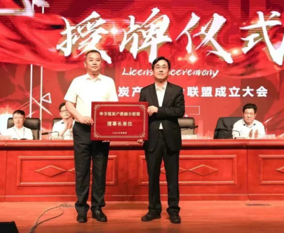 (省能源局總經(jīng)濟(jì)師張棟、市政副市長謝志昌、向畢節(jié)煤炭產(chǎn)教融合聯(lián)盟副理事長單位授牌)