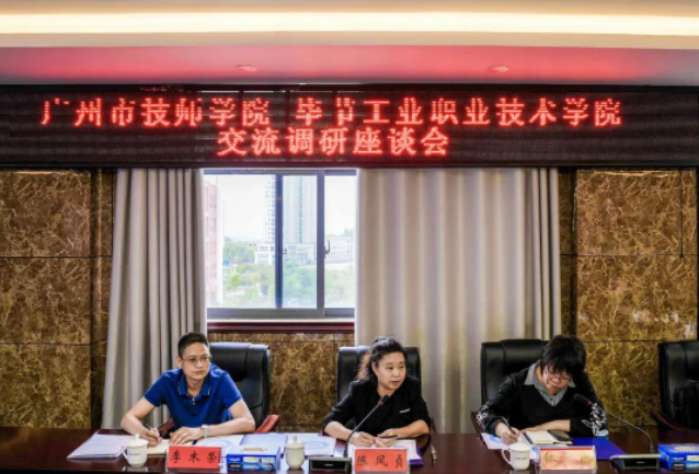 5月6日,廣州市技師學(xué)院赴我院開展校校合作交流調(diào)研座談會(huì)。廣州市技師學(xué)院副院長陳鳳貞,技能培訓(xùn)鑒定處副主任林琳、李木榮,新能源汽車檢測與維修專業(yè)帶頭人黃輝鍍;學(xué)院黨委委員、副院長黃瑛,汽車工程系黨總支書記張禾,汽車工程系負(fù)責(zé)人龔明勝及相關(guān)部門負(fù)責(zé)人、教師參加會(huì)議。