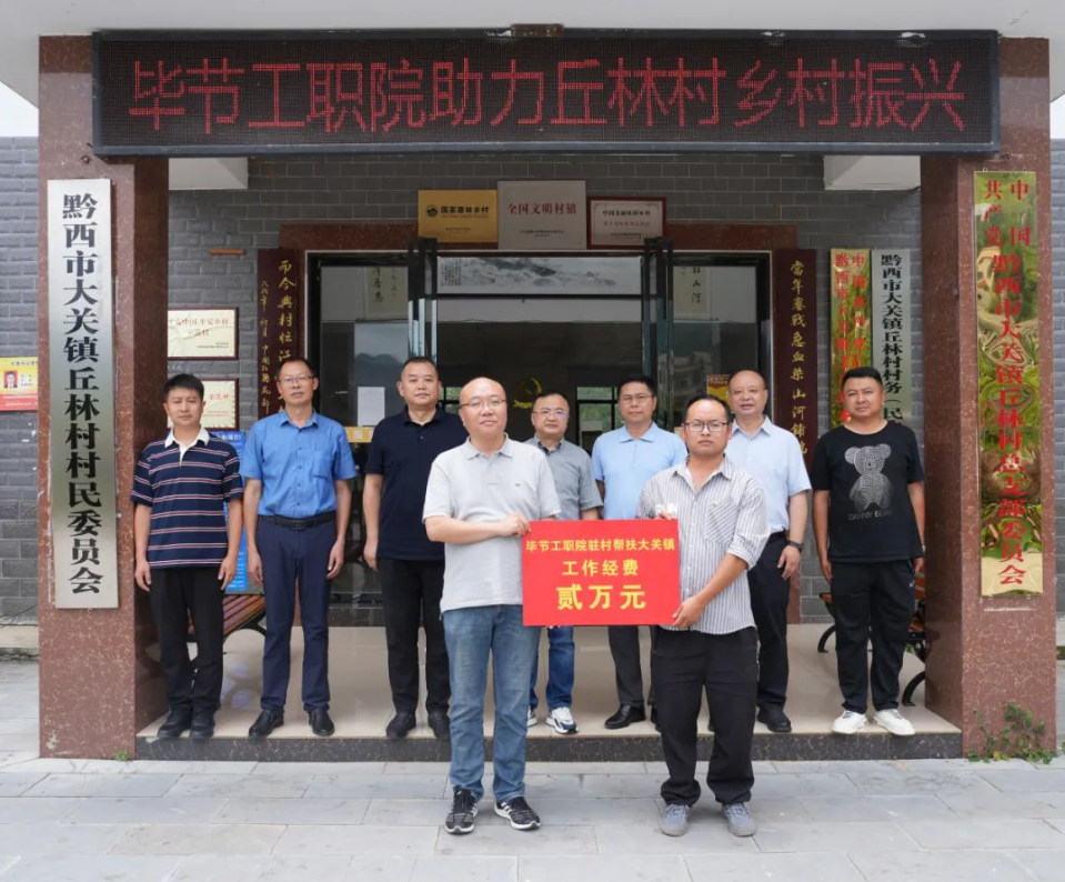 調(diào)研組一行實地走訪調(diào)研了丘林村紅軍渡口、培訓中心等地,看望學院暑期“三下鄉(xiāng)”赴丘林村社會實踐師生和學院駐村干部,詳細了解大關(guān)鎮(zhèn)、丘林村鄉(xiāng)村振興發(fā)展情況,共同謀劃推進鄉(xiāng)村振興具體措施并召開調(diào)研座談會。 會上,調(diào)研組一行聽取大關(guān)鎮(zhèn)和丘林村推進鄉(xiāng)村振興情況,了解發(fā)展規(guī)劃和旅游業(yè)發(fā)展、農(nóng)特產(chǎn)業(yè)發(fā)展、鄉(xiāng)村治理等方面面臨的困難和問題。 李涌表示,近年來,丘林村在黔西市委市政府、大關(guān)鎮(zhèn)黨委政府的領(lǐng)導下,在鄉(xiāng)村建設發(fā)展治理和產(chǎn)業(yè)發(fā)展等方面取得良好成效,發(fā)展迅速。畢節(jié)工職院將充分發(fā)揮自身優(yōu)勢,以打造示范為目的助力丘林村鄉(xiāng)村振興高質(zhì)量發(fā)展。他強調(diào),丘林村要堅持旅游發(fā)展定位,根據(jù)地方特點發(fā)揮資源優(yōu)勢、創(chuàng)新發(fā)展理念,緊盯發(fā)展目標,充分依托山水自然風光,深挖紅色文化資源,豐富完善旅游線路,提升景區(qū)環(huán)境和服務等級,改善基礎設施,打造特色民宿、特色美食,在鄉(xiāng)村旅游產(chǎn)業(yè)上持續(xù)發(fā)力,走出一條具有時代特征、地域特點的文化旅游與鄉(xiāng)村振興之路;要大力發(fā)展農(nóng)業(yè)經(jīng)濟,突出科學種植、改良品種、提高品質(zhì),促進經(jīng)濟林高產(chǎn)優(yōu)質(zhì)發(fā)展;要充分利用地域及氣候優(yōu)勢,打造季節(jié)經(jīng)濟作物,發(fā)展季節(jié)特色農(nóng)產(chǎn)品,同時制定相應政策措施,引進龍頭企業(yè),做優(yōu)做強深加工,打造特色鮮明的旅游特產(chǎn),全面形成文化、產(chǎn)業(yè)與旅游融合發(fā)展的良好局面。 邱國援介紹了學院情況并表示,丘林村要充分利用當?shù)刭Y源、區(qū)位、文化優(yōu)勢,做好規(guī)劃、設計和管理,全面推進鄉(xiāng)村旅游業(yè)和產(chǎn)業(yè)發(fā)展。下一步,學院將充分發(fā)揮優(yōu)勢,在產(chǎn)業(yè)打造、組織聯(lián)建、產(chǎn)品營銷、人才培養(yǎng)、交流協(xié)作等方面與丘林村形成合力,加大對鄉(xiāng)村人才、技能技術(shù)等方面支持,深入開展組織聯(lián)建,助力拓寬鄉(xiāng)村企業(yè)合作銷售渠道,打造特色突出、設施完善的紅色教育基地和學生社會實踐基地,引進企業(yè)參與鄉(xiāng)村振興,為推動鄉(xiāng)村經(jīng)濟社會發(fā)展提供智力、資源和平臺支持,實現(xiàn)校地互利共贏、共同發(fā)展。 各部門負責人就發(fā)揮職能服務丘林村鄉(xiāng)村振興進行了交流發(fā)言。 會后,學院與丘林村舉行了畢節(jié)工業(yè)職業(yè)技術(shù)學院思政實踐教育基地、學生社會實踐基地授牌儀式,并劃撥駐村工作經(jīng)費2萬元。
