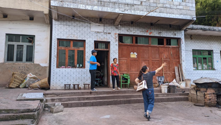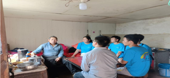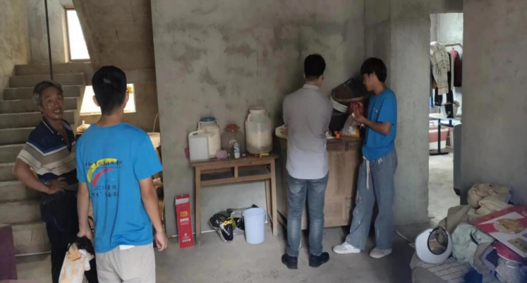 圖為指導(dǎo)老師帶著實(shí)踐小分隊對村民的住戶進(jìn)行考察