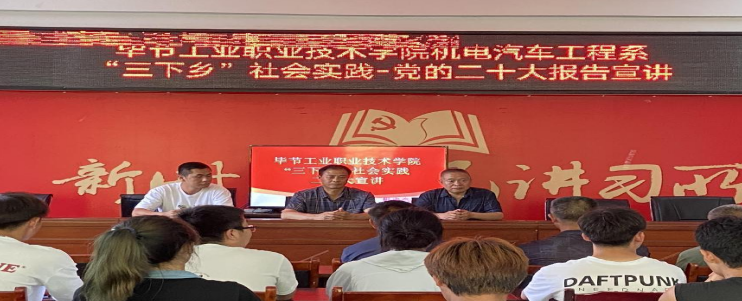 2023年7月4日-2023年7月11日,畢節(jié)工業(yè)職業(yè)技術(shù)學(xué)院機(jī)電汽車工程系社會實(shí)踐團(tuán)隊在畢節(jié)工職業(yè)學(xué)院領(lǐng)導(dǎo)的大力支持下,在學(xué)院團(tuán)委的號召下,在系部領(lǐng)導(dǎo)及團(tuán)總支的精密部署下,前往大方縣響水鎮(zhèn)沙灣村開展以“學(xué)習(xí)二十大 永遠(yuǎn)跟黨走 奮進(jìn)新征程”為主題的社會實(shí)踐活動。