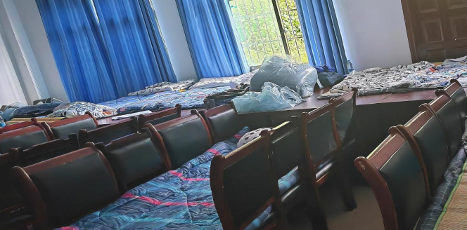 在沙灣村村委的極力支持下,實(shí)踐團(tuán)隊打地鋪、四支團(tuán)隊輪流進(jìn)行外出采買物資,做飯。