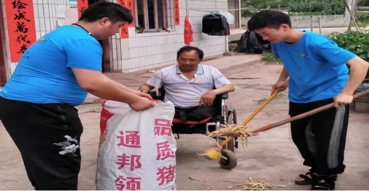 圖為電火宣傳隊幫助殘疾、空巢老人干農(nóng)活