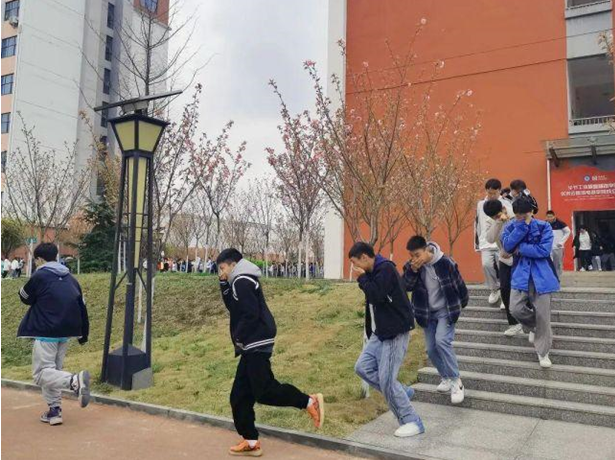 上午11點,隨著警笛的拉響,消防演練就此拉開序幕,同學(xué)們用手掩住口鼻,壓低身體,保持冷靜,行動迅速,按照指定的逃生路線有序撤離到安全區(qū)域,撤離結(jié)束后各班迅速清點人數(shù),確保全部人員安全撤離。