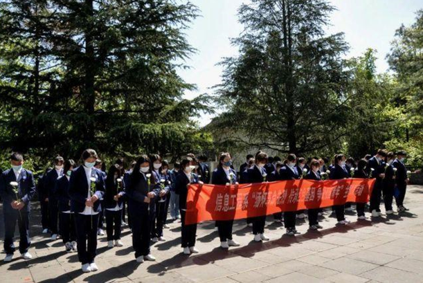 活動在莊嚴(yán)肅穆的國歌聲中拉開了序幕。團(tuán)員代表向革命烈士敬獻(xiàn)花籃,全體老師、同學(xué)向烈士深鞠三躬,肅立默哀,寄托對革命烈士的無限緬懷與哀思,以表對英烈的崇高敬意。
