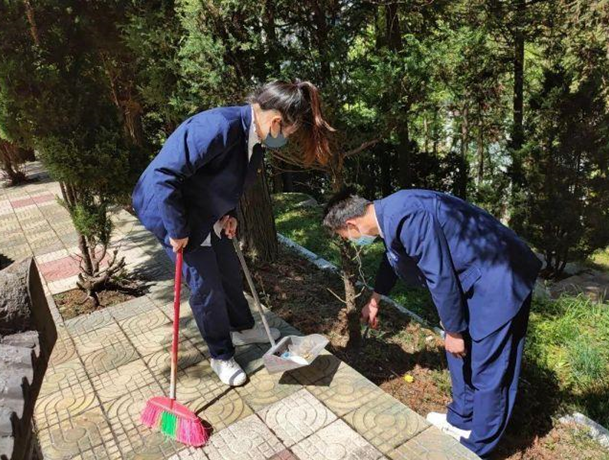 參加此次活動的同學(xué)們有序的分工,在烈士陵園內(nèi)清掃垃圾,清除雜草、雜物等,營造了一個干凈整潔的緬懷環(huán)境。