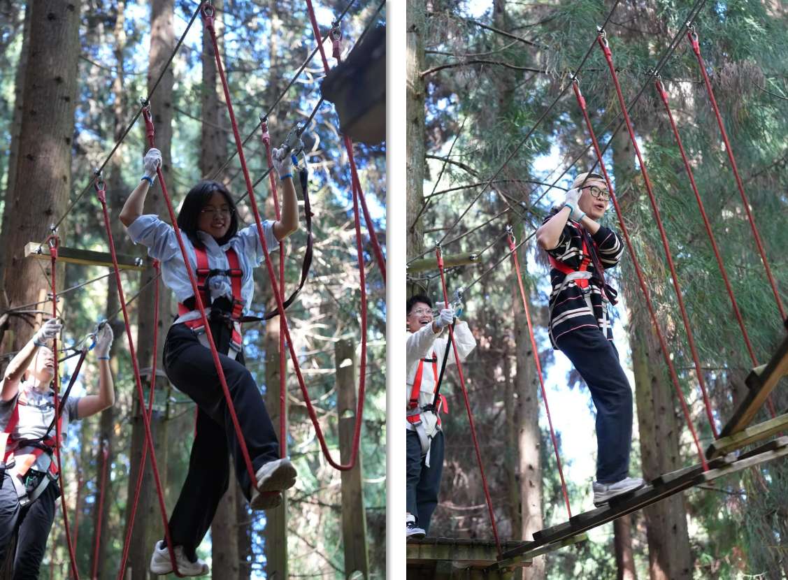 活動項目豐富多樣,現(xiàn)場氣氛歡快,活動前,工作人員向大家詳細介紹了規(guī)則和項目內容,老師們共同商討研究,信心滿滿、蓄勢待發(fā)。破冰訓練、彩虹滑道、叢林穿越等一系列充滿刺激挑戰(zhàn)的團隊游戲和互動,使得教師們在愉悅的情緒下彼此更加親近。
