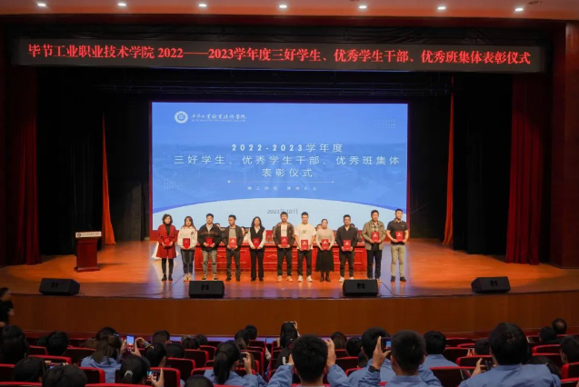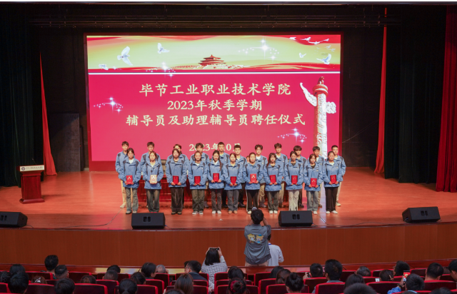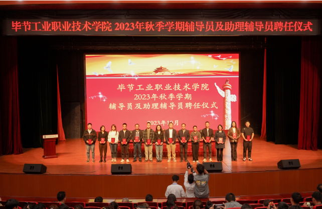 10月19日,畢節(jié)工業(yè)職業(yè)技術(shù)學(xué)院2022—2023學(xué)年度表彰儀式、2023級輔導(dǎo)員及助理輔導(dǎo)員聘任儀式在會議中心舉行。學(xué)院黨委副書記付善華,黨委委員、副院長黃河,黨委委員、紀委書記向陽,黨委委員、副院長黃文碧,黨委委員、宣傳統(tǒng)戰(zhàn)部部長余斌出席會議。800余名師生代表參加會議。會議由黃文碧主持。