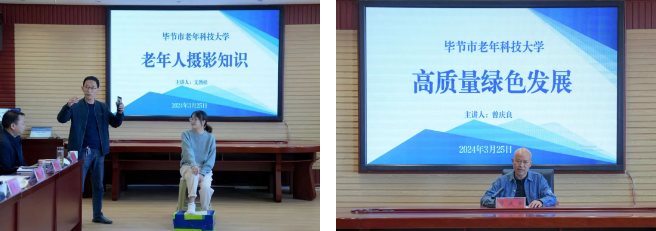 3月25日,“畢節(jié)市老年科技大學”掛牌儀式在畢節(jié)工業(yè)職業(yè)技術學院舉行。貴州省老科學技術工作者協(xié)會副會長、畢節(jié)市老科學技術工作者協(xié)會會長李克明,貴州省老科學技術工作者協(xié)會科學普及與教育專門委員會委員、畢節(jié)市老科協(xié)副會長、畢節(jié)市老年科技大學校長李瓊,畢節(jié)市科學技術協(xié)會副主席羅麗;學院黨委書記李涌,黨委副書記、院長邱國援出席儀式,學院領導班子成員及相關部門負責人20余人參加儀式。儀式由李瓊主持。 李克明在會上表示,掛牌成立畢節(jié)市老年科技大學是提升我市老年人科學素質(zhì),切實有力推動科技為民服務的客觀需要,標志著我市科技教育和老年教育的融合發(fā)展,開啟了我市對老年人開展繼續(xù)教育和科普培訓的新征程。老年科技大學要堅持以提升老年人的科學素養(yǎng)、健康素質(zhì)、數(shù)字技能等為目標,進一步擴大老年教育資源供給,助力科學普及,推動科技為民服務,為建設新發(fā)展理念示范區(qū)、譜寫中國式現(xiàn)代化畢節(jié)實踐新篇章貢獻智慧和力量。 授牌儀式結(jié)束后,市老年科技大學副校長文勁松、市老科學技術工作者協(xié)會智庫專家曾慶良分別開展了《老年人攝影知識》和《高質(zhì)量綠色發(fā)展》現(xiàn)場授課。