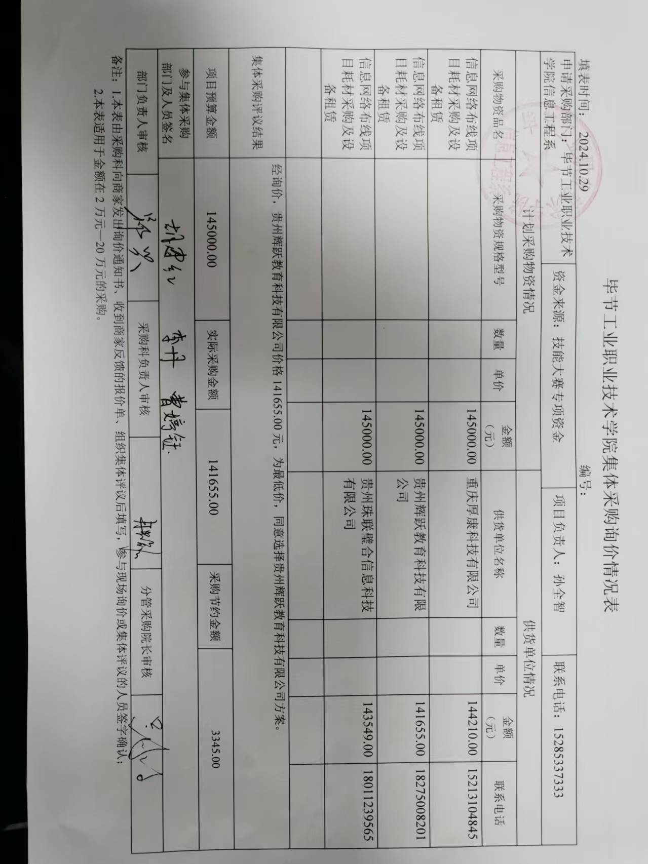 畢節(jié)工業(yè)職業(yè)技術(shù)學(xué)院信息網(wǎng)絡(luò)布線項(xiàng)目耗材采購(gòu)及租賃詢價(jià)結(jié)果公示