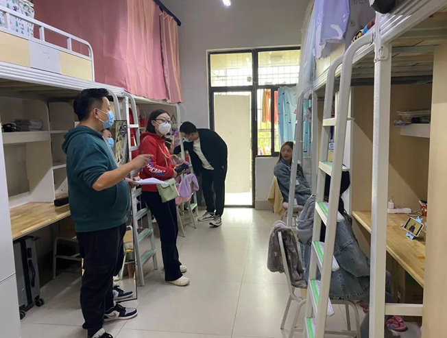 我系聶濤、史曉嵐、何應(yīng)垚、蒙光國等多名老師第一時(shí)間趕赴學(xué)院防控一線,組織開展疫情靜默期間各項(xiàng)工作,并帶領(lǐng)我系志愿者同學(xué)用心用情服務(wù)學(xué)生、關(guān)愛學(xué)生。在靜默期間走訪學(xué)生寢室,關(guān)注重點(diǎn)特殊人群、排查心理健康異常情況等,并做好相應(yīng)記錄。