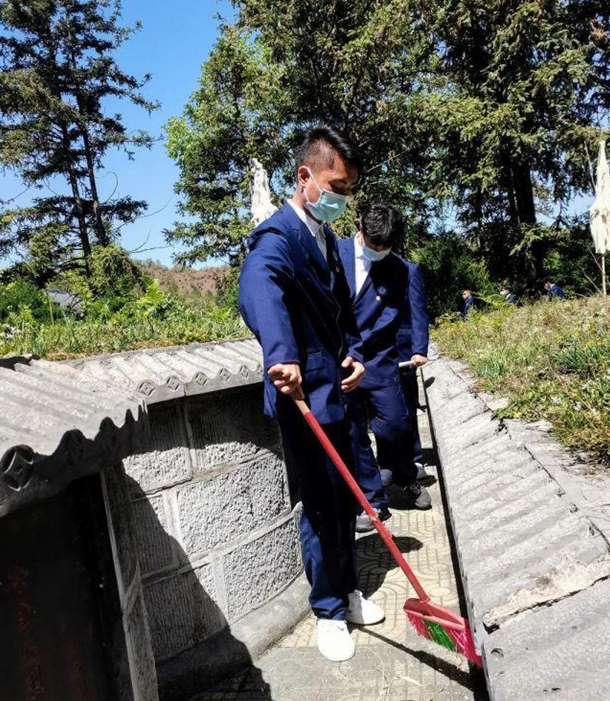 參加此次活動(dòng)的同學(xué)們有序的分工,在烈士陵園內(nèi)清掃垃圾,清除雜草、雜物等,營造了一個(gè)干凈整潔的緬懷環(huán)境。